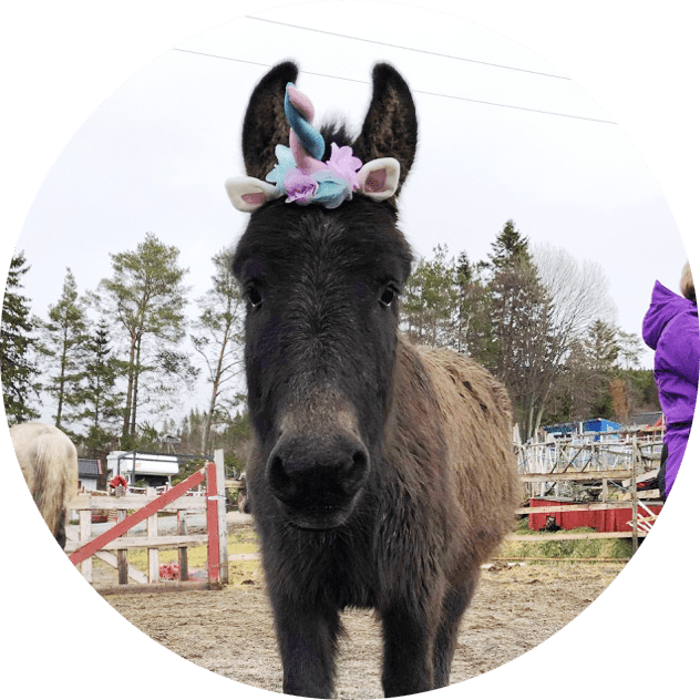 Venus er gårdens fine, oppmerksomhetssyke, kloke esel som hyler om hun ikke får være med på det som skjer. Venus elsker å luffe rundt på tunet og lar deg gjerne sitte en liten stund på ryggen, bare det ikke blir så lenge om gangen. Venus ble gitt til oss da hun som hadde henne ikke kunne ha henne lengre. Hun elsker kos, mat og er super sosial!