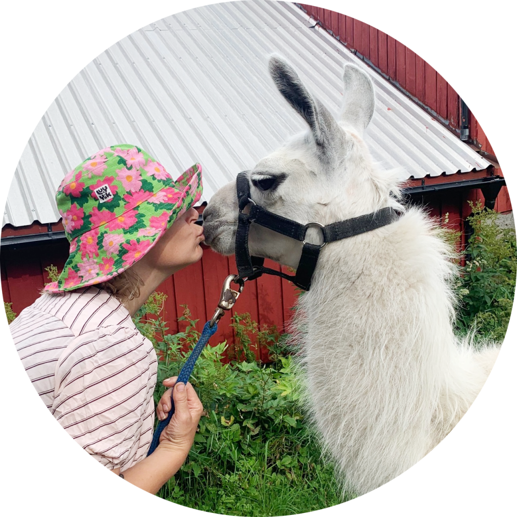 Just a lama – no drama. Ronja er gårdens elegante frøken, hun vokter lammene og er omsorgsfull og god. Hun er veldig nysgjerrig, vil alltid stikke nesa si oppi det som skjer. Men hun er ikke noen koseklump, selv om hun liker godt å være med på tur.